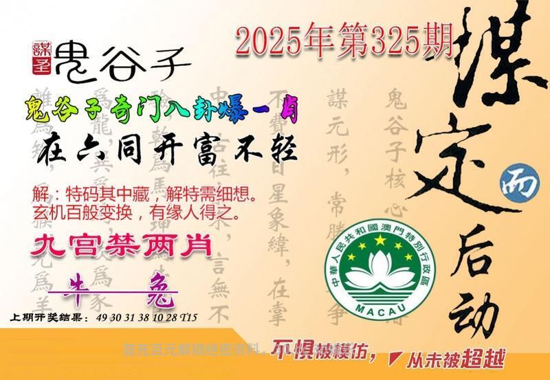 ╠解鬼谷子╣325期:“在六同开富不轻”这句话,从字面意思上来看,“三六同开”可能指的是某种与数字3和6相关的机遇或条件同时出现或开启的情况,而“富不轻”则可能意味着这种条件下带来的财富或者好处是相当可观的 |